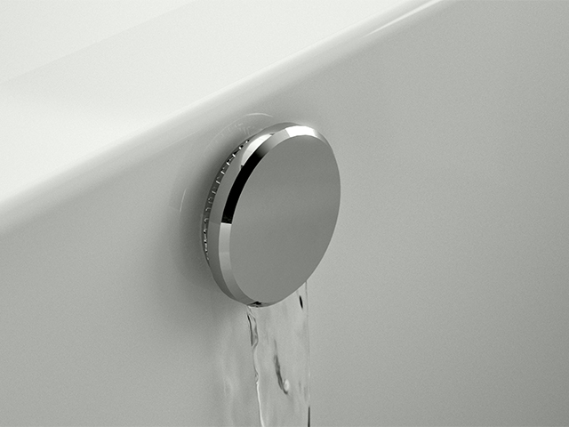 - Встроенное фиксированное отверстие контроля перелива круглой формы с системой Click-Clack; системой Click-Clack стока ванны, с сифоном с горизонтальным отводом и гибким шлангом.